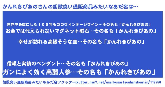 | 意味不明あだ名 | 『かんれきぴあのフォーエバー』 |