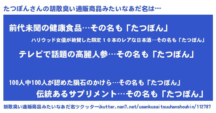| ヘコむあだ名 | 『たつぼん(小並感)』『たつっぺ』 |