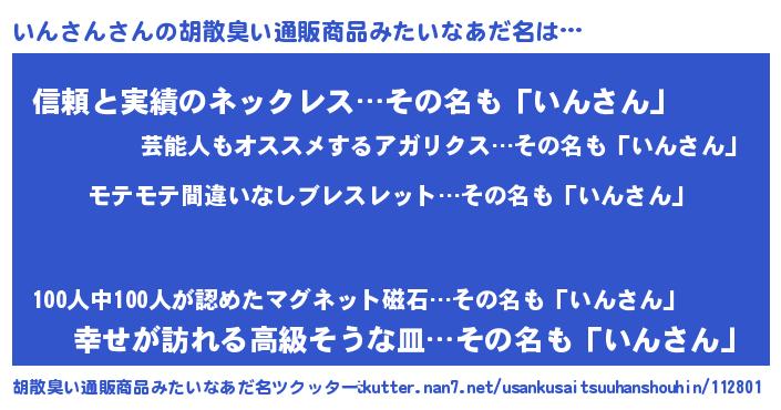 いんさんさんの胡散臭い通販商品みたいなあだ名をツクッター!
