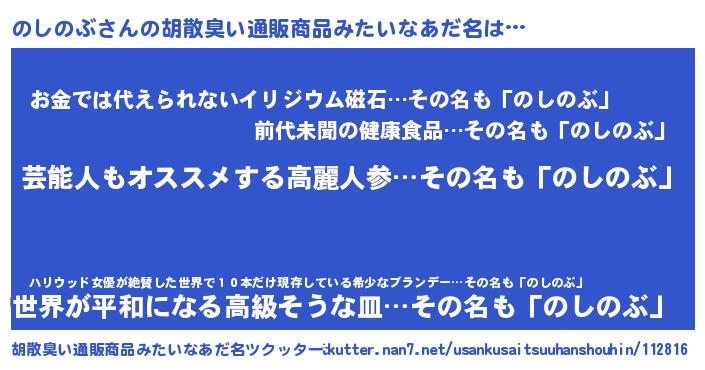 | ヘコむあだ名 | 『レバニラ』『のしのぶ(震え声)』 |