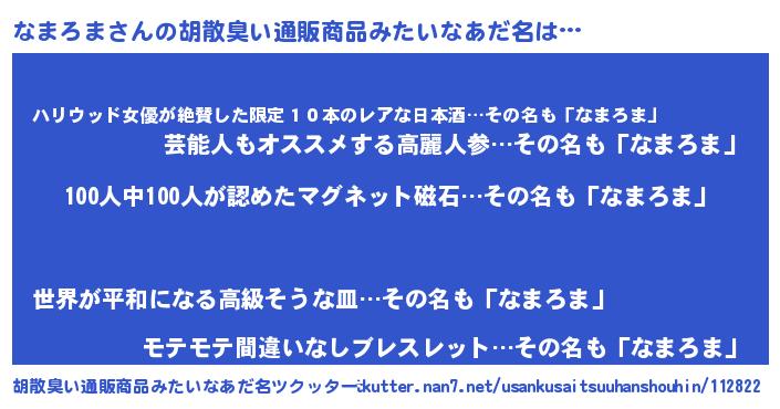 | ヒーロー風カッコイイあだ名 | 『正義の使者なまろま』『仮面ナマダー』 |