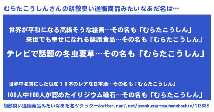 | ヒーロー風カッコイイあだ名 | 『最強戦士ムラタコウシン』 |
