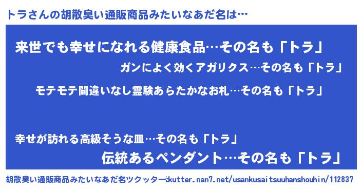 | ヘコむあだ名 | 『トラもー』『トラ(苦笑)』 |