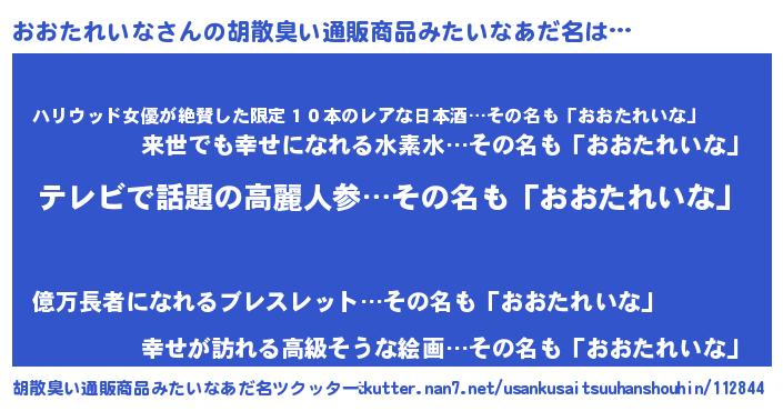 | 意味不明あだ名 | 『自称おおたれいな』 |