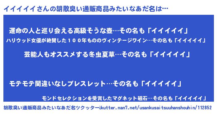 | 恥ずかしいあだ名 | 『イイイイイデラックス』『イイっちょ』 |