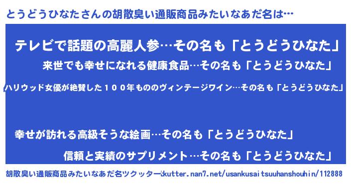 | 意味不明あだ名 | 『住所不定無職とうどうひなた(11歳)』 |