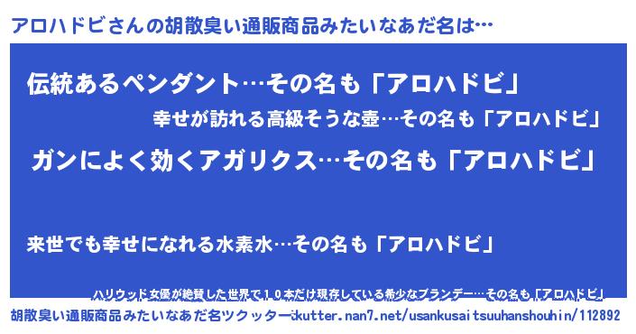 | 意味不明あだ名 | 『自称アロハドビ』 |