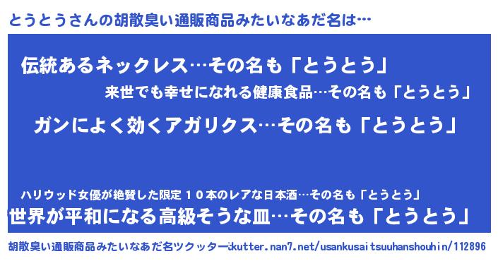 | 意味不明あだ名 | 『自称とうとう』『とうとうフォーエバー』 |