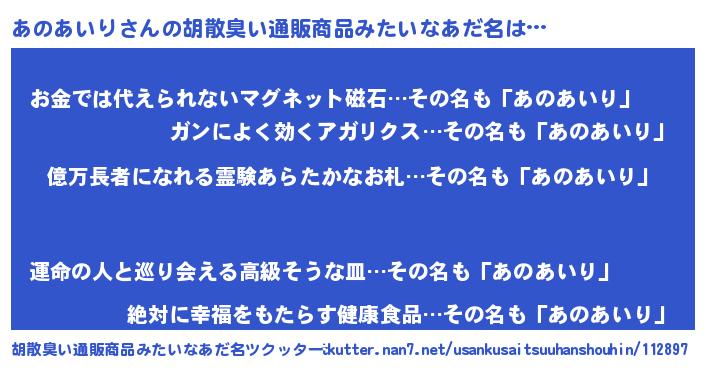 | 意味不明あだ名 | 『ペロリンあのあいり』『自称あのあいり』 |