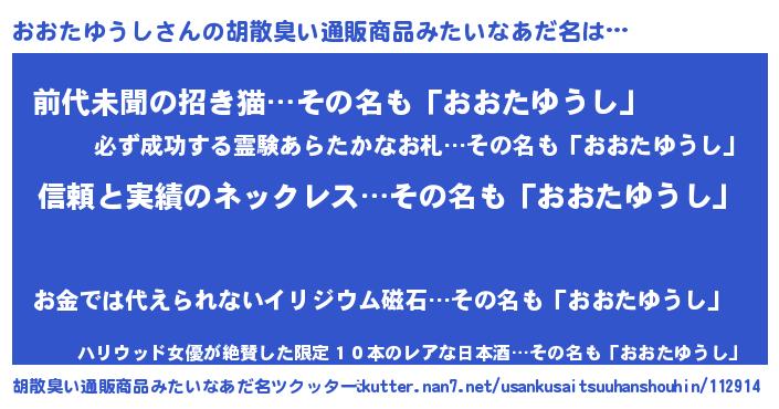 | 意味不明あだ名 | 『とにかく怪しいおおたゆうし』 |
