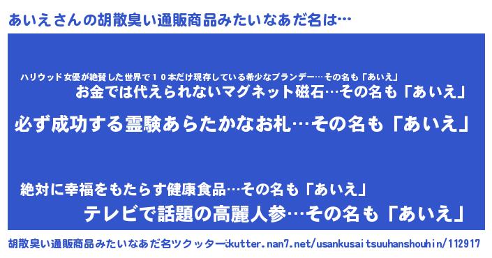 | 欧米人風あだ名 | 『トリンドルあいえ』『マイケルあいえ』 |