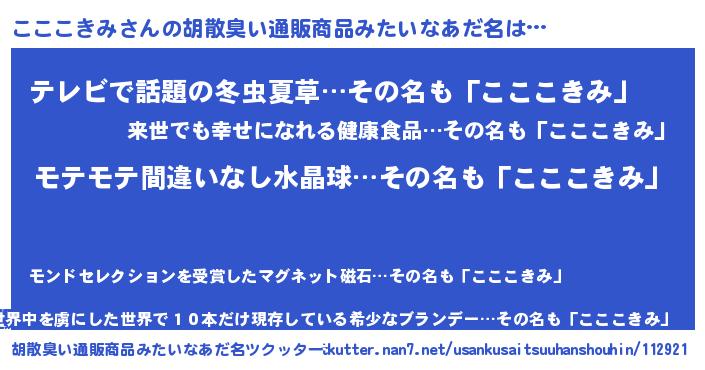 | ヘコむあだ名 | 『ここにゅー』『こここきみ(笑)』 |