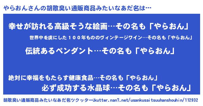| ヘコむあだ名 | 『やらぷりん』『牛乳』『やらもー』 |