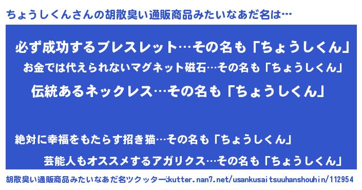 | 意味不明あだ名 | 『とにかく怪しいちょうしくん』 |