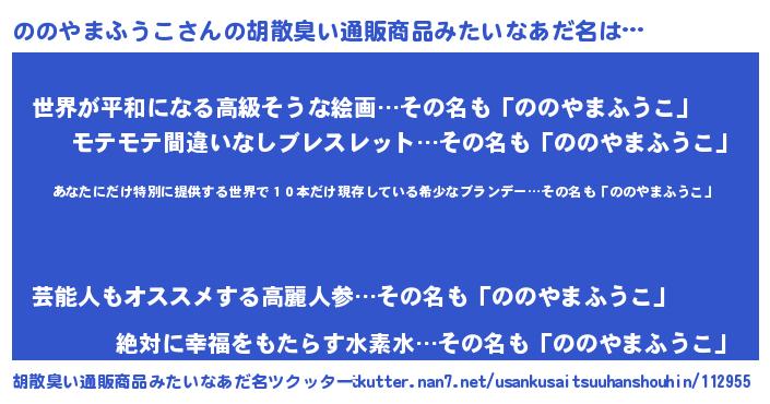 | 意味不明あだ名 | 『住所不定無職ののやまふうこ(93歳)』 |