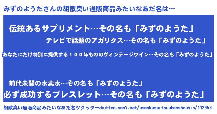 | 意味不明あだ名 | 『住所不定無職みずのようた(8歳)』 |