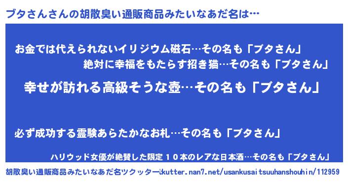 | ファンタジー風あだ名 | 『エターナルブタサンー』『クインブット』 |