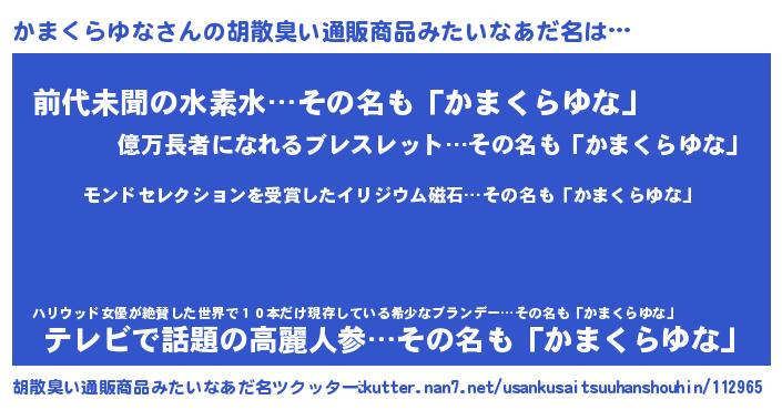 | ヘコむあだ名 | 『かまくらゆな(爆)』『かまっふぃ~』 |
