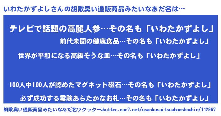 | 肩書あだ名 | 『いわたかずよし国家主席』 |