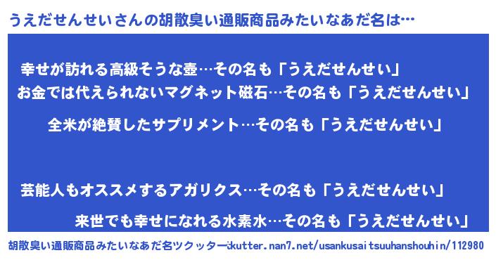 | 意味不明あだ名 | 『とにかく怪しいうえだせんせい』 |