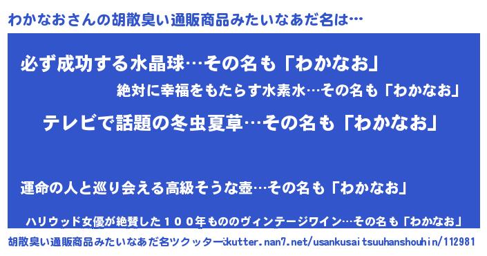 | ヘコむあだ名 | 『わかもー』『わかなお(爆)』『牛乳』 |