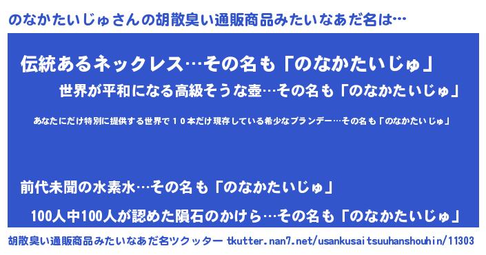| 女子向けラノベタイトル風あだ名 | 『のなかたいじゅの玉の輿計画!』 |