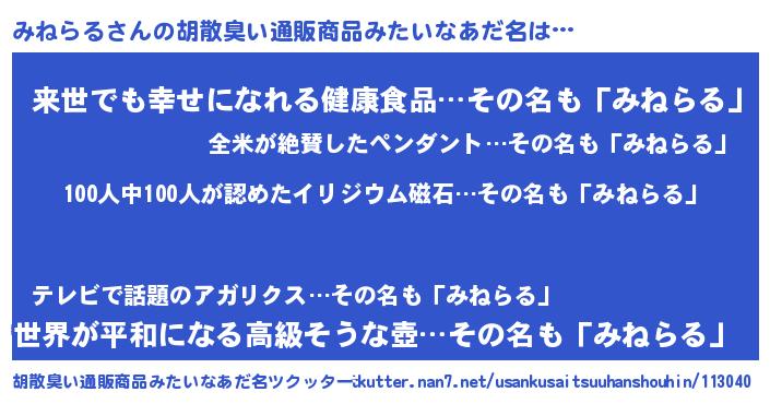 | 意味不明あだ名 | 『眠気覚ましガムみねらる味』 |