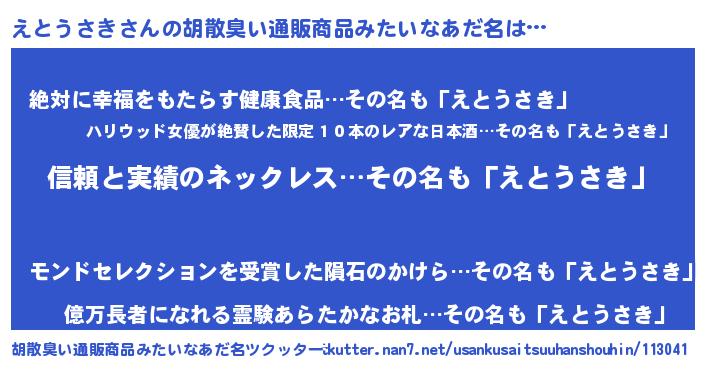 | 欧米人風あだ名 | 『ウサインえとうさき』 |