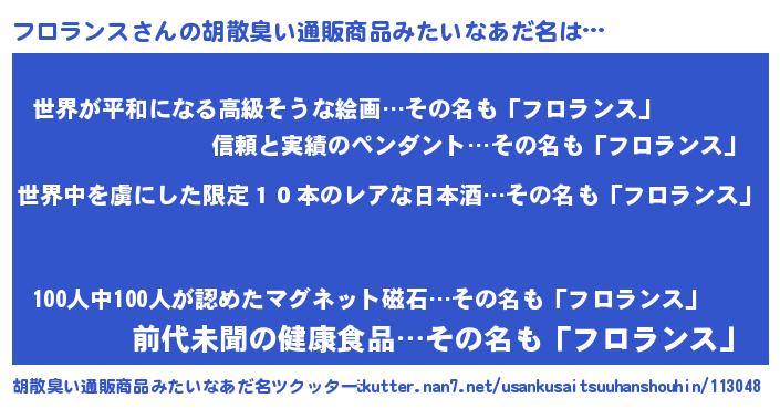 | 欧米人風あだ名 | 『アンジェラ・フロランス』 |