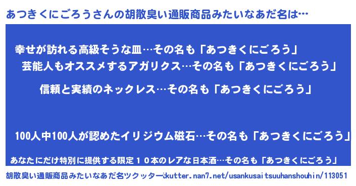| 意味不明あだ名 | 『とにかく怪しいあつきくにごろう』 |