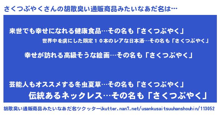 | ヘコむあだ名 | 『つくし』『さくつぶやく(笑)』 |