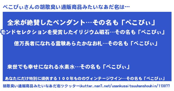| 男性向けラノベタイトル風あだ名 | 『ペコピィアートオンライン』 |