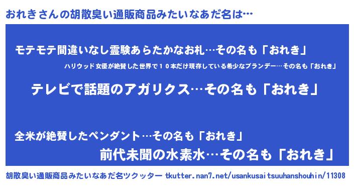 | 意味不明あだ名 | 『自称おれき』『ペロリンおれき』 |