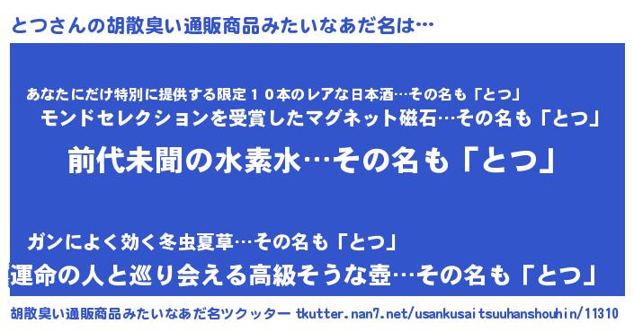 | 恥ずかしいあだ名 | 『とつちん』『とつっちょ』 |