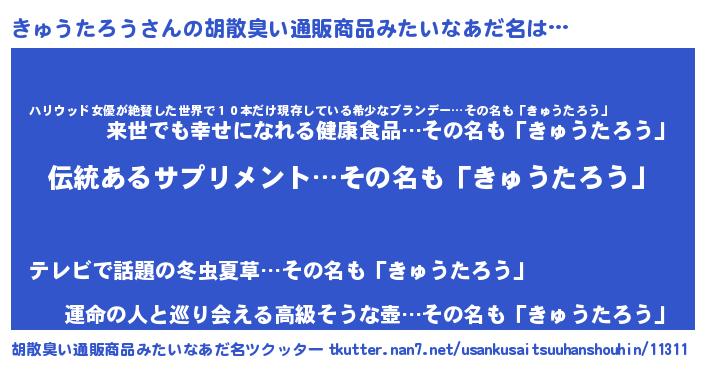 | 意味不明あだ名 | 『とにかく怪しいきゅうたろう』 |