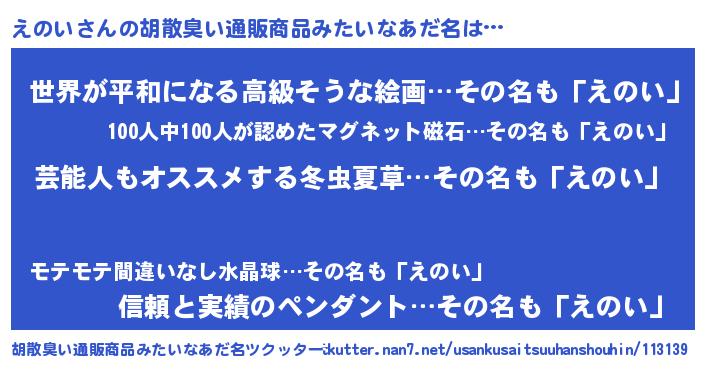 | 男性向けラノベタイトル風あだ名 | 『Re:えのいから始める異世界生活』 |
