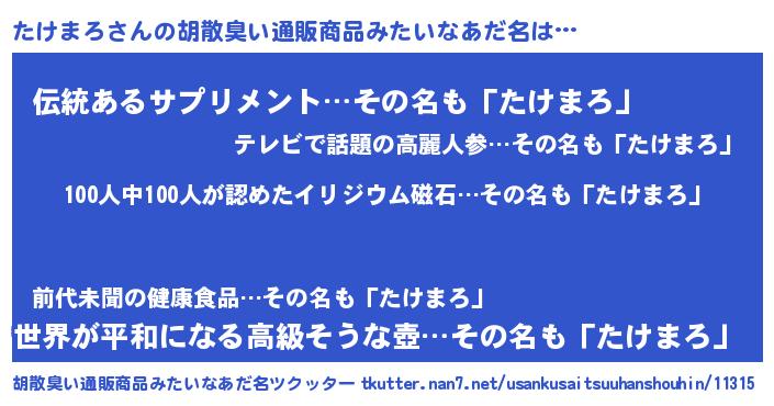 | ヘコむあだ名 | 『たけっ子』『なまこ酢』 |