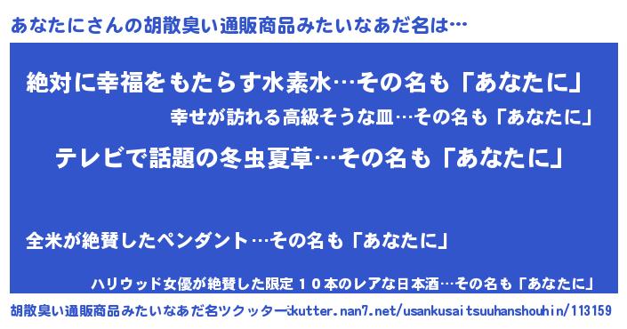 | 恥ずかしいあだ名 | 『アナタニデラックス』『あなちん』 |