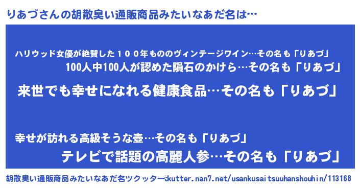 | 恥ずかしいあだ名 | 『りあちん』『リアヅデラックス』 |
