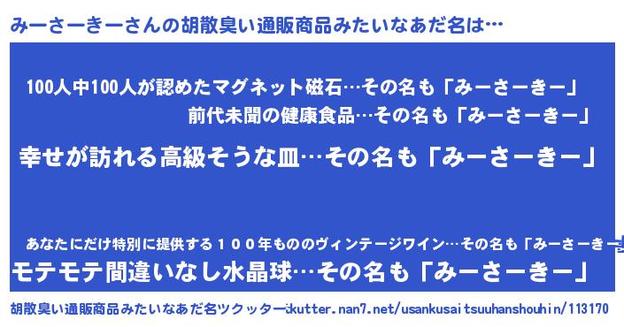 | 欧米人風あだ名 | 『みーさーきークリステル』 |