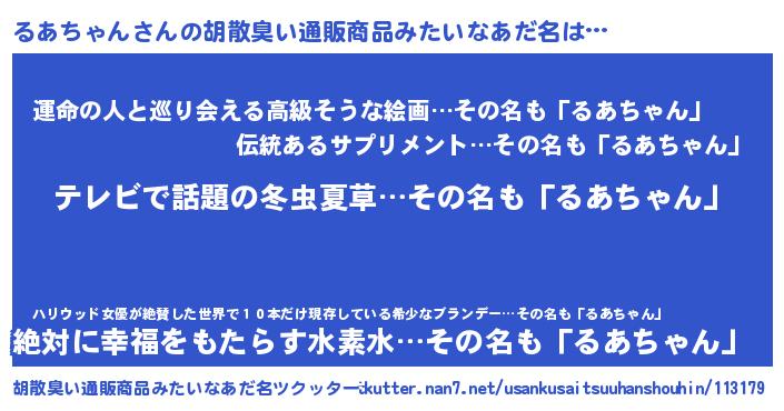 | ヘコむあだ名 | 『なまこ酢』『るあちゃん(笑)』 |