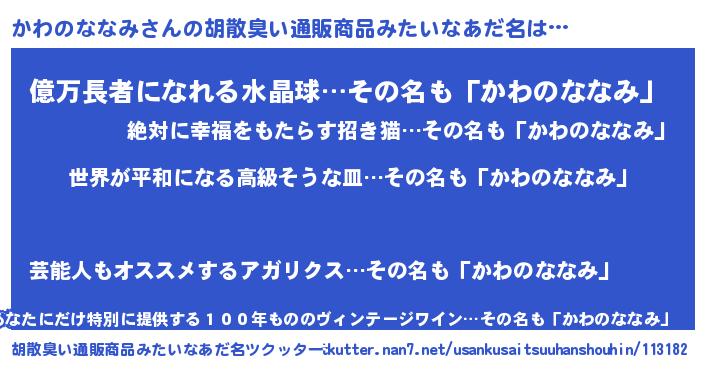 恥ずかしいあだ名 | 『かわっちょ』『プリティーかわのななみ』 |