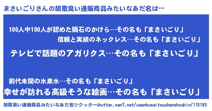 | 意味不明あだ名 | 『自称まさいごり』『永久保存まさいごり』 |