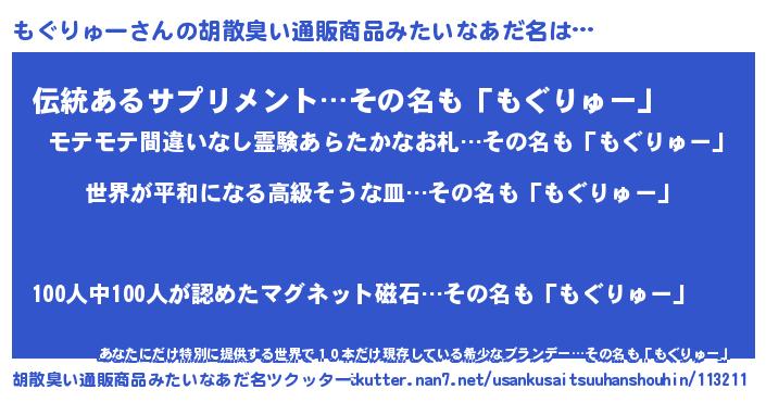 | ヒーロー風カッコイイあだ名 | 『ウルトラもぐりゅーマン』 |