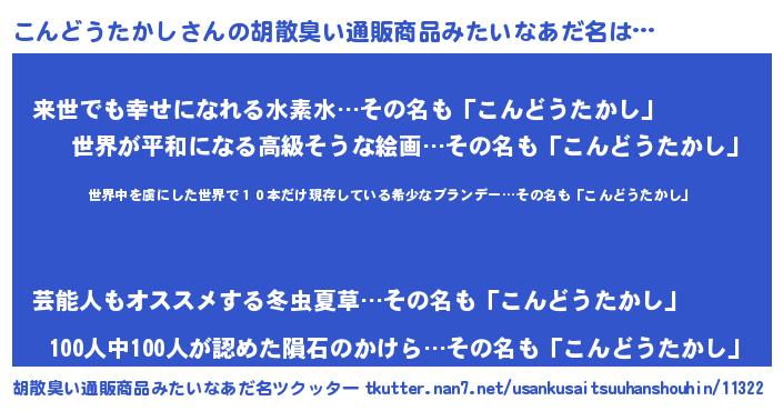 | ヘコむあだ名 | 『こんどうたかし(震え声)』『豆乳』 |