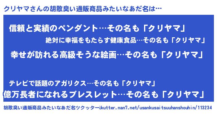 | 意味不明あだ名 | 『クリヤマフォーエバー』 |