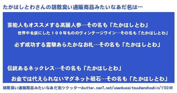 | 肩書あだ名 | 『たかはしとわ御曹司』 |