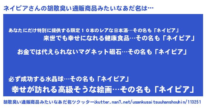 | ポケモン風あだ名 | 『ネックウザ』『ネーイイ』 |