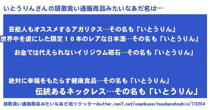 | ヒーロー風カッコイイあだ名 | 『愛の使者いとうりん』『魔戒騎士イト』 |