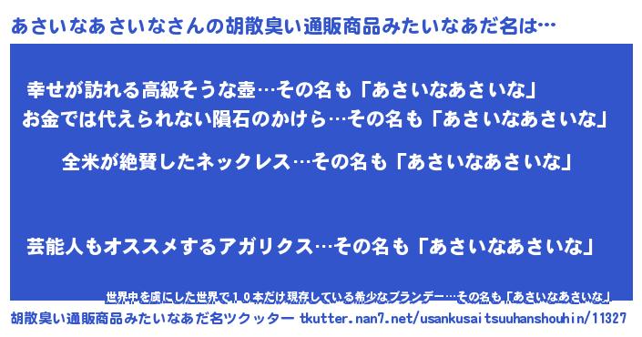 | ヘコむあだ名 | 『あさ太郎』『牛乳』『あさにゅー』 |